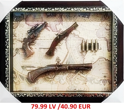 Декоративна картина с 3 оръжия и патрони е чудесна идея за подарък.