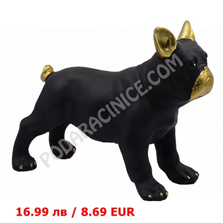Качествено изработена статуетка на изправен френски Булдог, оцветена в матово черно и златисто.