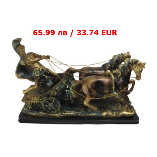 Статуетката римска колесница е изработена прецизно от полирезин с покритие от метал и с внимание към всеки детайл.